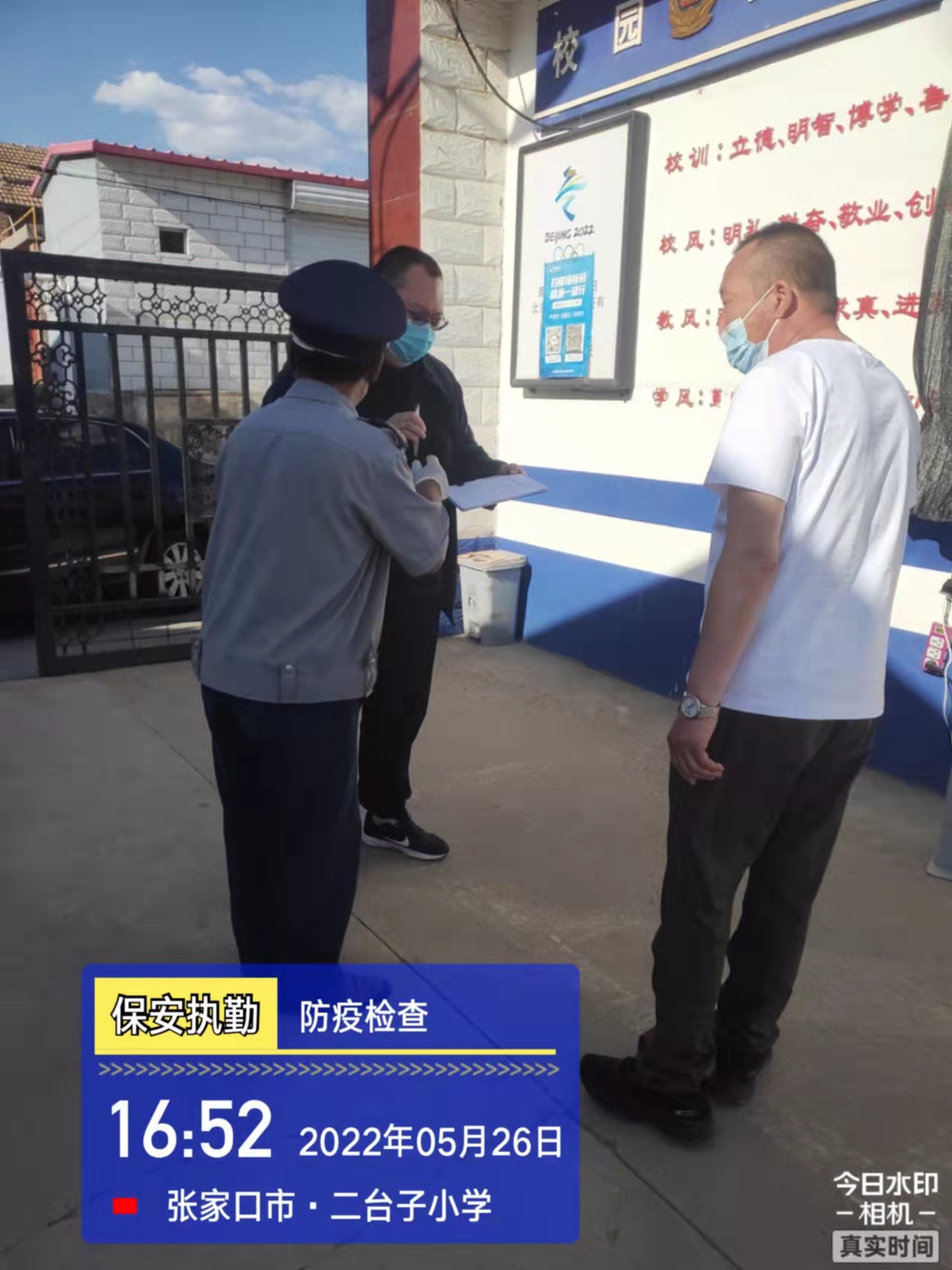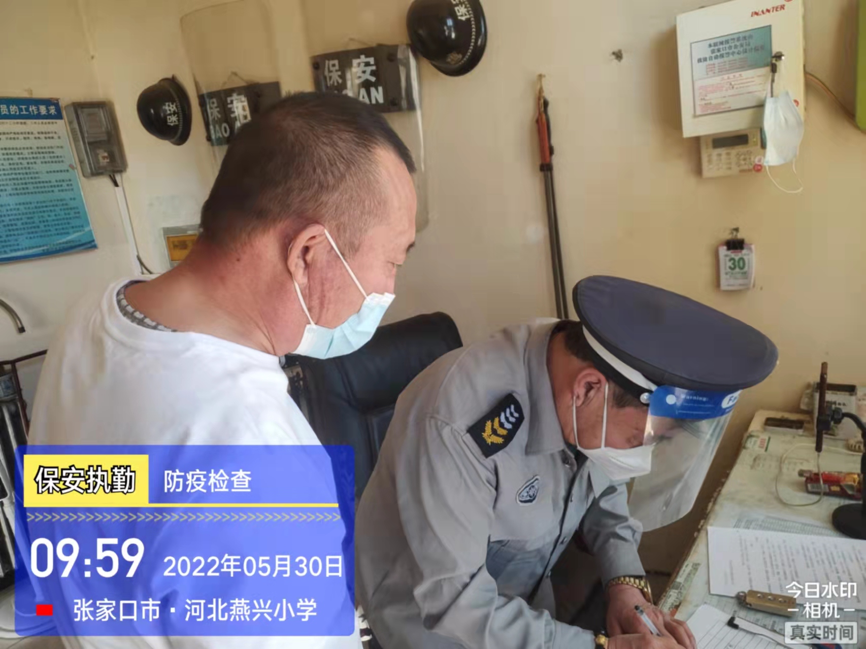 會(huì)后,我公司迅速召開“疫情期間學(xué)校門衛(wèi)安全防控工作要求”的會(huì)議,制定了校園安全防疫規(guī)定:疫情防控期間,校園保安隊(duì)員必須穿制服,規(guī)范佩戴“三件套”(防護(hù)隔離面罩、N95口罩、一次性PVC手套);進(jìn)出校園的師生必須測(cè)量體溫,外來人員需登記、測(cè)溫、掃碼(幸福張家口,呈綠碼)、且持7日內(nèi)核酸陰性檢測(cè)結(jié)果;保安室需保持干凈整潔,物品擺放有序,勤開窗通風(fēng),定期噴灑消毒藥水。為此,公司特成立校園防疫檢查小組,由副經(jīng)理帶隊(duì),協(xié)同主管大隊(duì)長對(duì)經(jīng)開區(qū)所有中小學(xué)校安保崗位進(jìn)行防疫工作檢查,檢查期間,發(fā)現(xiàn)問題,現(xiàn)場(chǎng)處理,并及時(shí)與校方領(lǐng)導(dǎo)溝通,杜絕同樣問題再次出現(xiàn),確保校園防疫安保工作萬無一失,為各校師生鑄就一道安全防線!