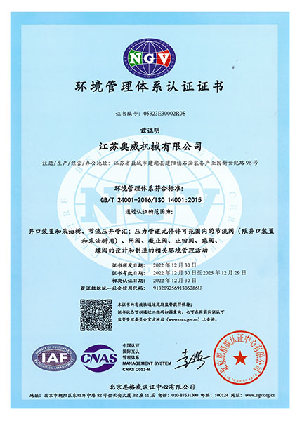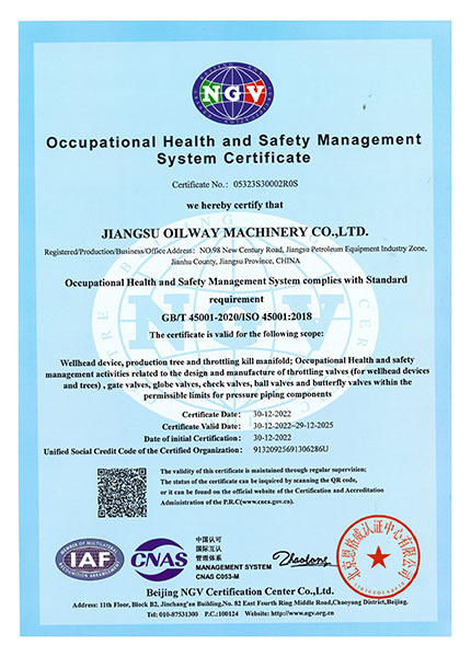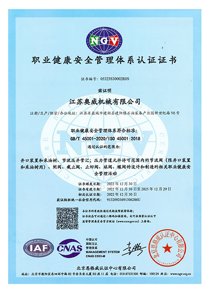 我們一直秉著質(zhì)量可靠、用戶至上的理念為客戶提供服務(wù),公司先后取得API6A,API6D,API16A,API16C,CE,TRCU (EAC),API6FA,ISO9001,ISO14001,ISO45001等國際認證,使我們能更加規(guī)范化的按照標準及客戶要求,提供優(yōu)質(zhì)產(chǎn)品。